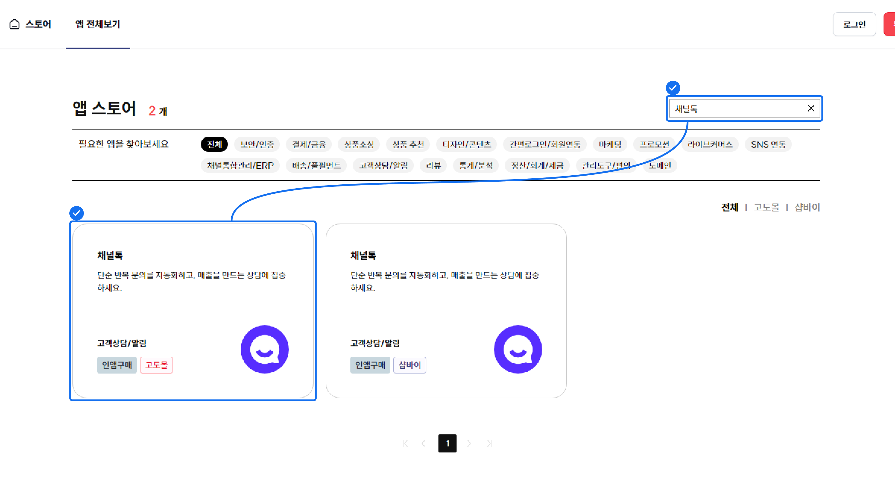 ### • 스토어에서 채널톡 찾기