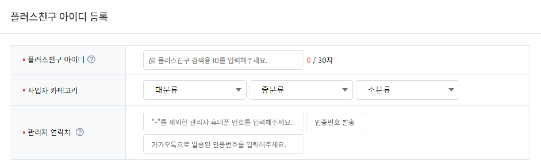 '비즈니스 인증'을 받은 경우에만 카카오톡 플러스 친구 아이디 등록이 가능해요.