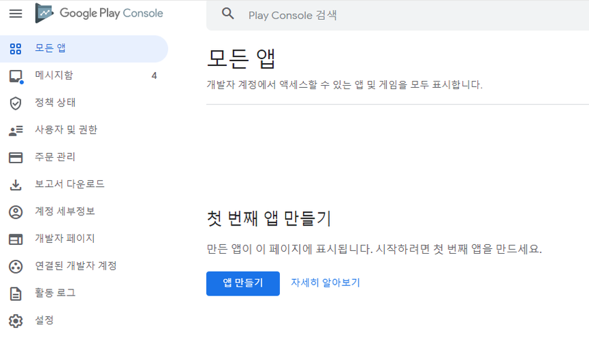 * <https://play.google.com/console/developers>[ ](https://play.google.com/console/developers)에 접속해주세요.